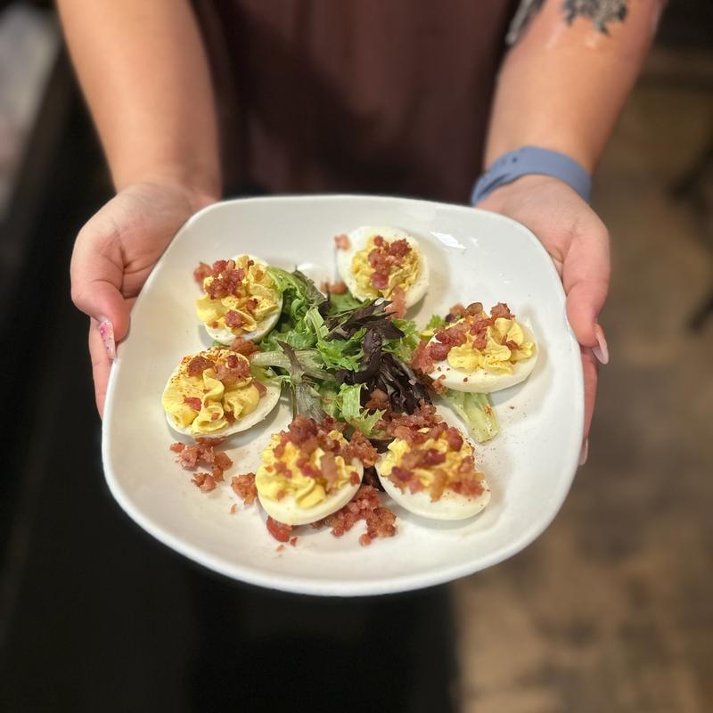-Biscuit & gravy poached egg, cheddar biscuit, sausage gravy.